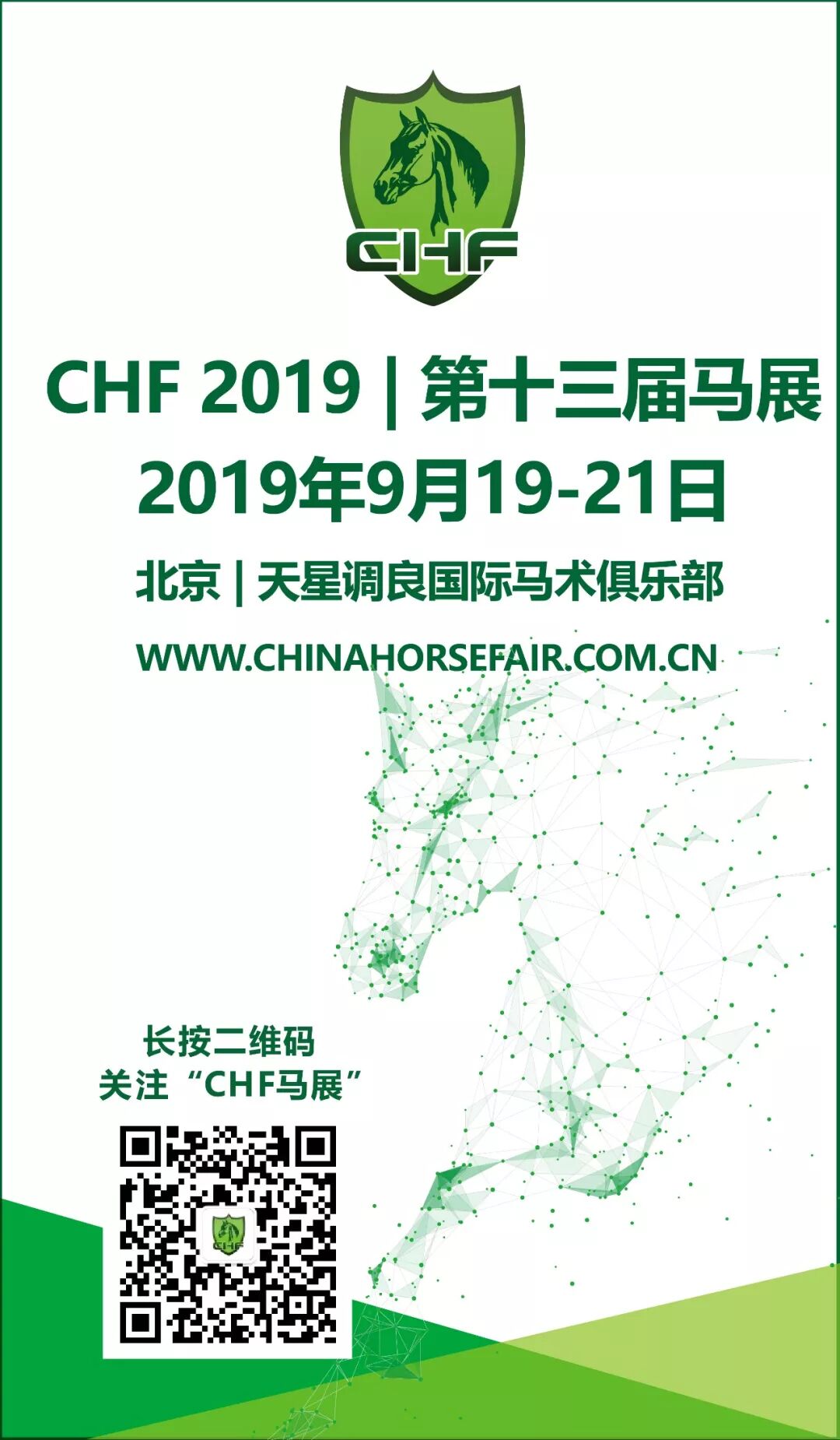 2019年9月19-21日,第十三届中国国际马业马术展览会(CHF 2019)全面升级,展、赛、会全方位结合,携手国内顶级马术赛事和文化中心——天星调良马术,共同打造“国际马术文化周(北京)”,国内外企业参展和参与论坛演讲的热情空前高涨。CHF 2019 作为目前国内唯一的服务于专业马术运动和休闲乘骑产业链各个环节的贸易展览会,一直依据行业和市场变化不断创新,与中国马产业共同成长。