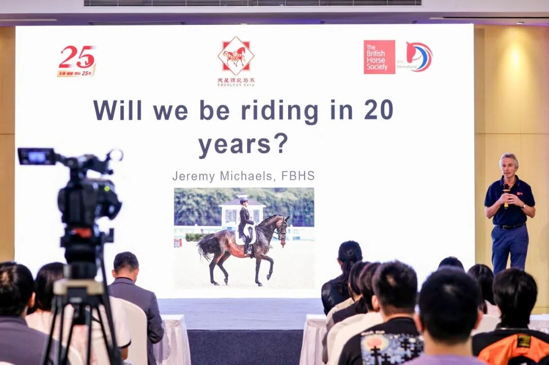 国际马术论坛于9月19-21日在天星调良马术举办。本届论坛围绕五个精彩主题展开,今日首个主题由英国马会BHS院士级教官杰瑞米先生主讲,题目为“20年后我们还会骑马吗?”,并探讨了马术运动的发展阶段及未来前景。