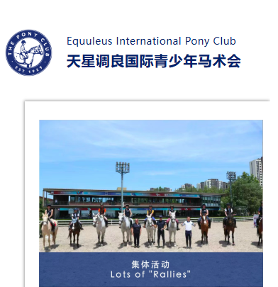 The Pony Club(国际青少年马术会)于1929年成立于英国,已有近百年历史。是全球最大、最具权威性的青少年马术组织,面向对马匹和骑术感兴趣的年轻人(4-25周岁)。 通过独特的青少年马术教育系统、全而多样的马术类活动、广泛的国际国内交流项目,推动马术在青少年中的普及,使青少年在健康、愉悦的人文环境中建立个性和技能、塑造价值观,和同龄人一起享受马术生活方式。