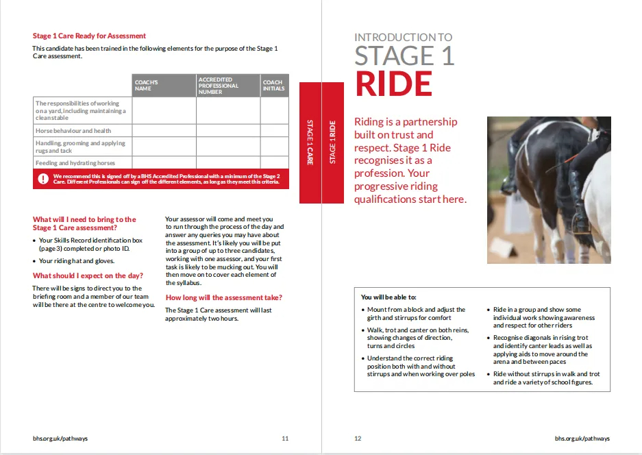 BHS Stage 1 (第一阶段)考试,是BHS专为业余马术爱好者设计的,达到13周岁即可报名参加,考试内容适合初学者马术入门。对马匹行为、健康、人马安全&福利、马匹管理等建立全方位的理论与实操基础。同时打好马术骑乘的基本功,为未来深入系统学习马术做准备。广受各国13周岁及以上的青少年马术爱好者欢迎,阶段性检验学习成果,为之后的马术道路打好基础。
