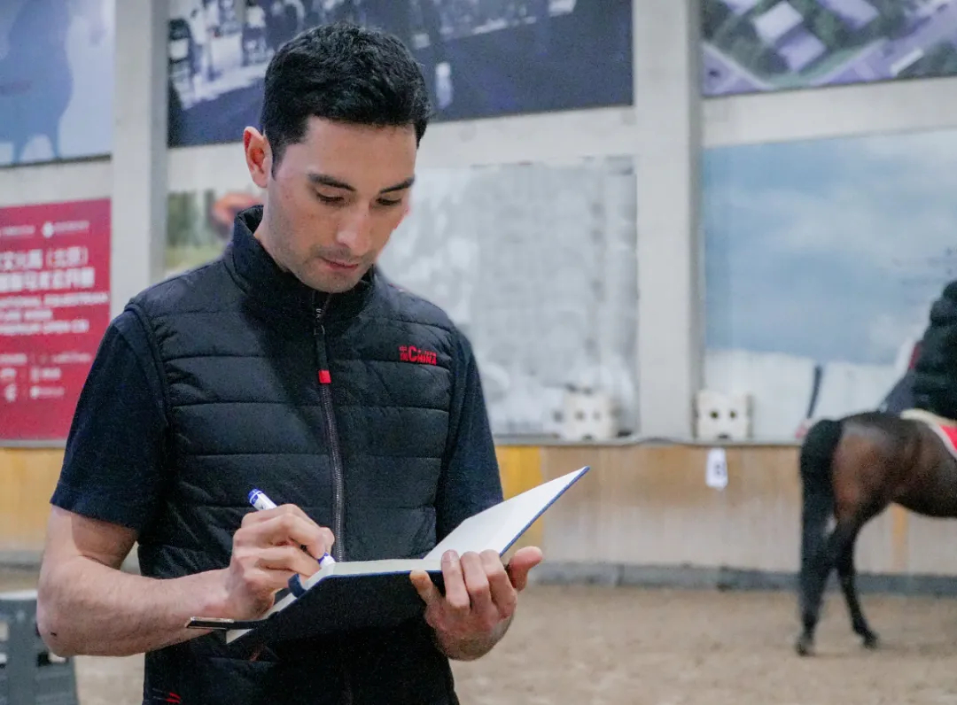 这种理念贯穿了整堂课程。华天在指导中反复强调,优秀的骑手不仅要懂得如何驾驭,更要懂得如何照顾和理解马匹。他将自己多年在国际赛场积累的“马房管理”智慧融入教学,教导学员:真正的掌控来自于马匹的自愿配合,而非强硬的指令。