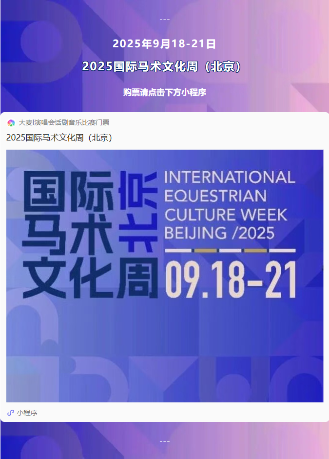 票务 | 攻略提前做 观赛不迷惑 2025国际马术文化周(北京)购票&观赛攻略