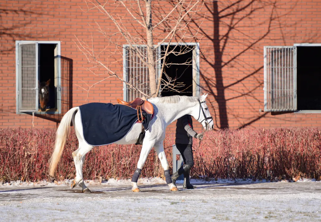 其次,如果你没有牵过马,务必请一位教练或有经验的马房工作人员帮助你。