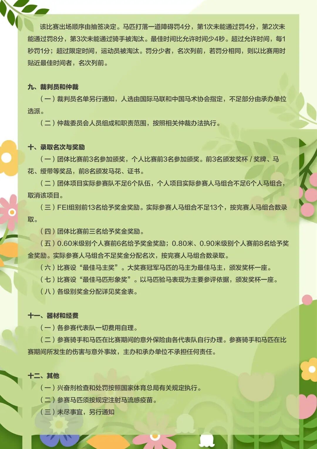 (四)所有参赛运动员及马匹严禁佩戴任何与广告相关的饰物。