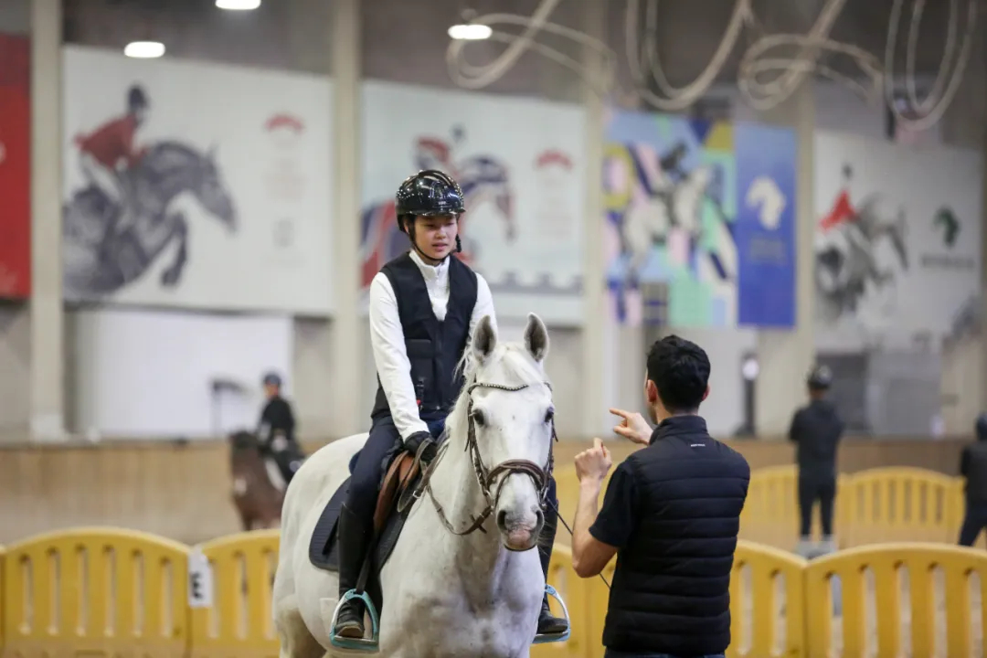 这种理念贯穿了整堂课程。华天在指导中反复强调,优秀的骑手不仅要懂得如何驾驭,更要懂得如何照顾和理解马匹。他将自己多年在国际赛场积累的“马房管理”智慧融入教学,教导学员:真正的掌控来自于马匹的自愿配合,而非强硬的指令。