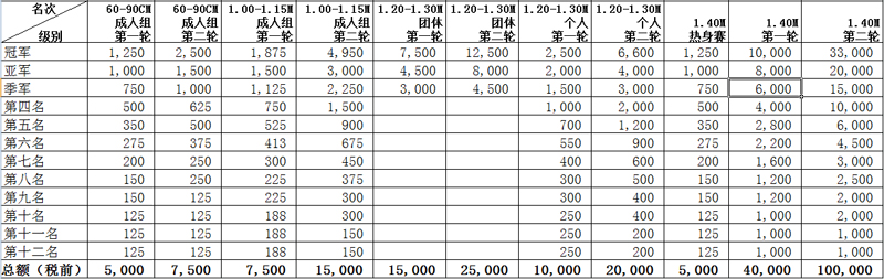 1.20米-1.30米级别团体赛和个人赛 1500元