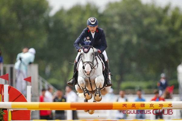 随后第十一个出场的骑手马裕兴显然从容得多,他骑着爱马天空之城(Elly Van De Bosland Hoeve)行云流水般跳完了全程,完美的零罚分完赛,用时仅87.26秒,获得个人资格赛第6名。这也是此阶段比赛中出现的第二个零罚分。