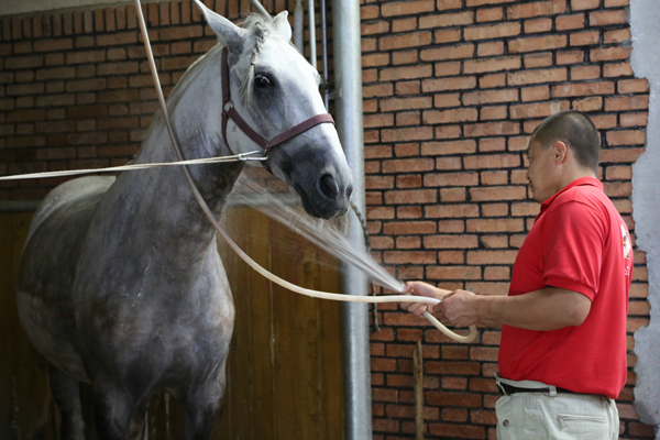 1训练后,流汗、呼吸加重都是马匹自身体温升高的表现。马匹运动后的呼吸是通过自身体温来控制的。“马匹在夏季训练后呼吸加重是血液中氧气减少的缘故”这个理论是完全错误的。